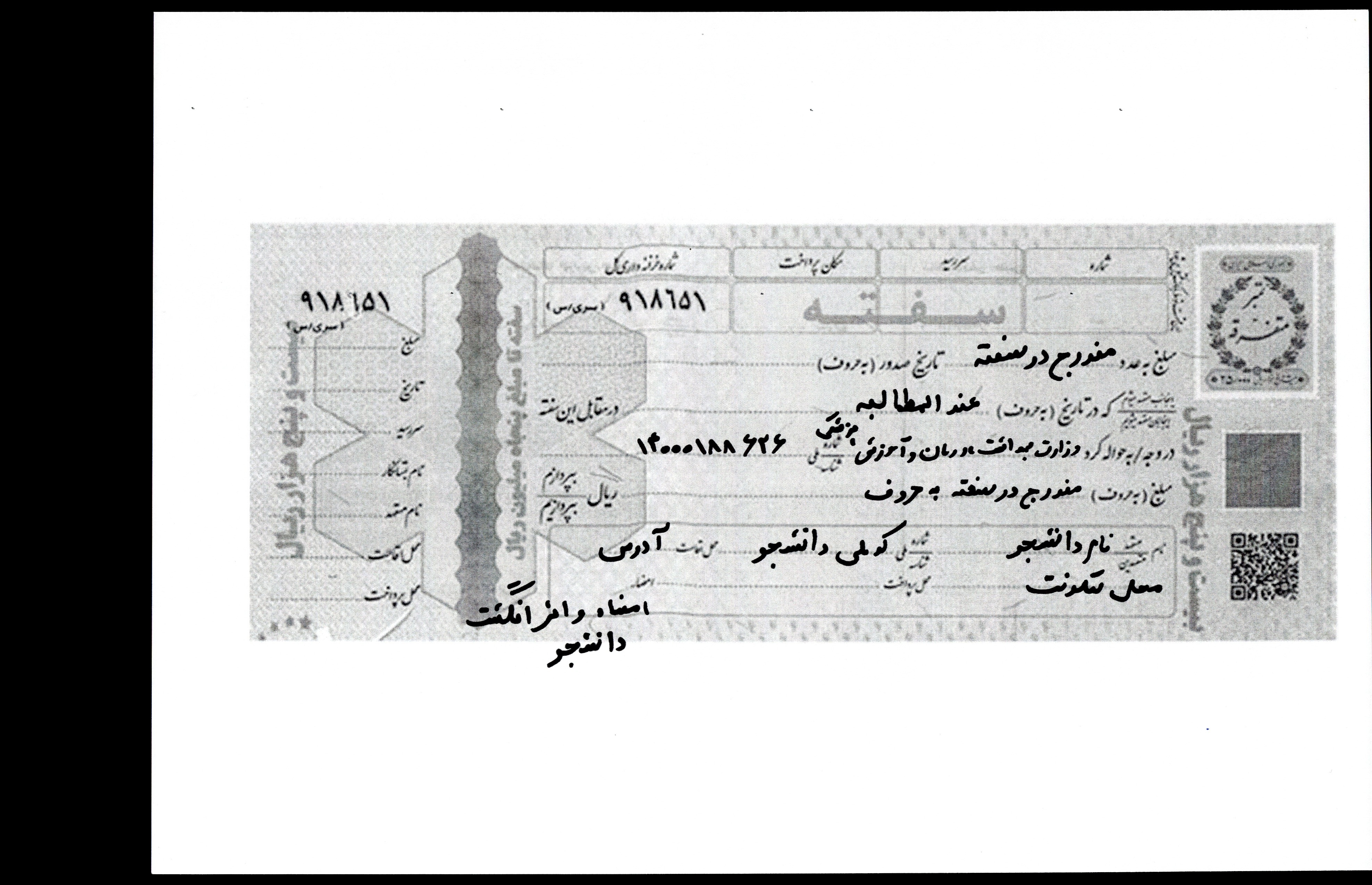 باتوجه به الزام وزارت بهداشت، درمان و آموزش پزشکی، ارائه سفته بانکی به همراه سند تعهد محضری برای کلیه پذیرفته شدگان سهمیه تعهدی الزامی و اجباری می باشد.