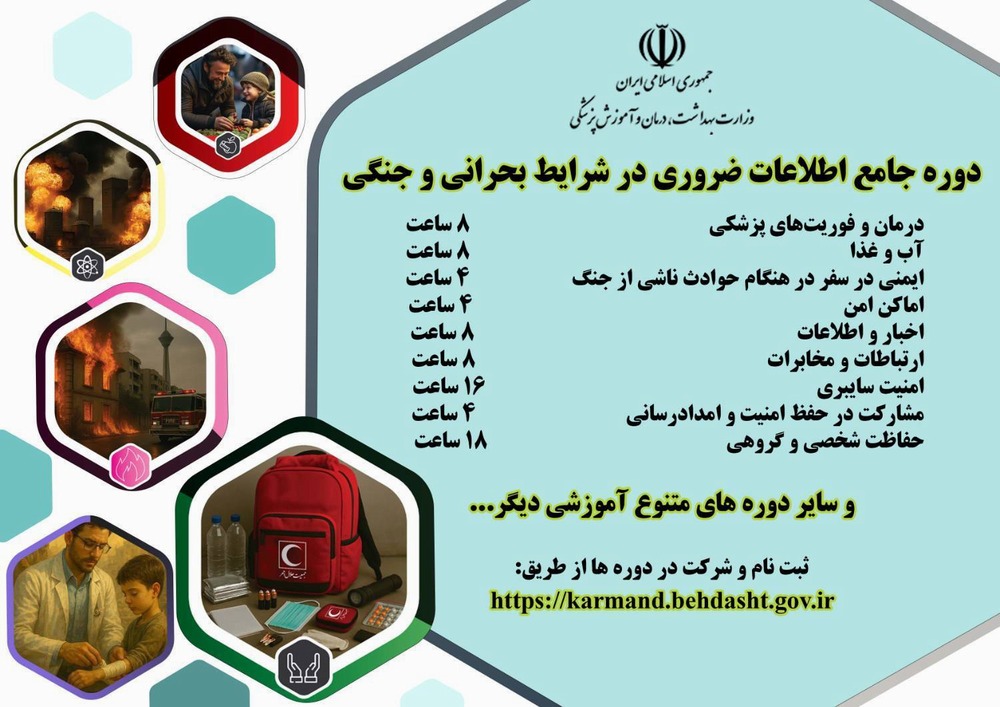 «با توجه به قرار داشتن کشور در وضعیت جنگی، بسته آموزشی ویژهای با محوریت تقویت مهارتها و توانمندیهای مورد نیاز در شرایط بحران و جنگ نیز تدوین و به فهرست دورهها افزوده شده است.»