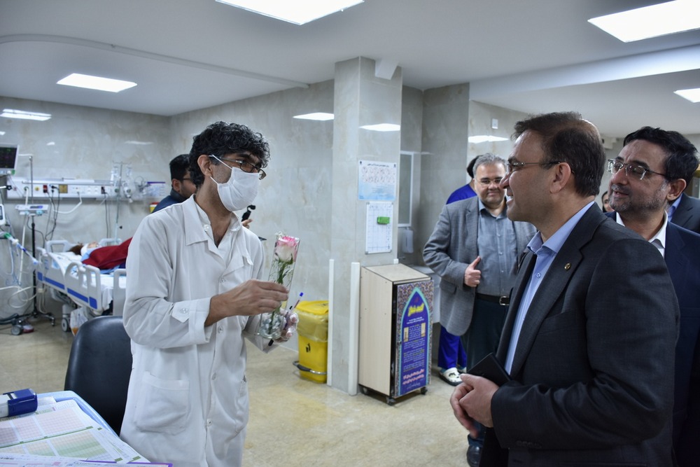 همزمان به مناسبت سالروز میلاد حضرت زینب (س) دیدار دکتر سید رضا رئیس کرمی و دکتر حمید چوبینه رئیس و معاون توسعه دانشگاه علوم پزشکی تهران با پرستاران بیمارستان شریعتی