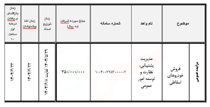تذکر مهم: شرکتهایی که دارای مجوز اسقاط خودرو ازمراجع ذیصلاح هستند می توانند در این مزایده شرکت نمایند.