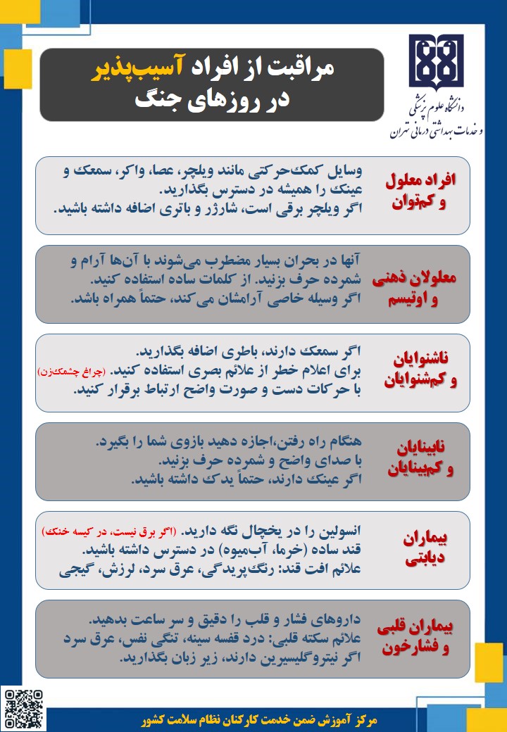 مراقبت از افراد آسیب‌پذیر در روزهای جنگ
